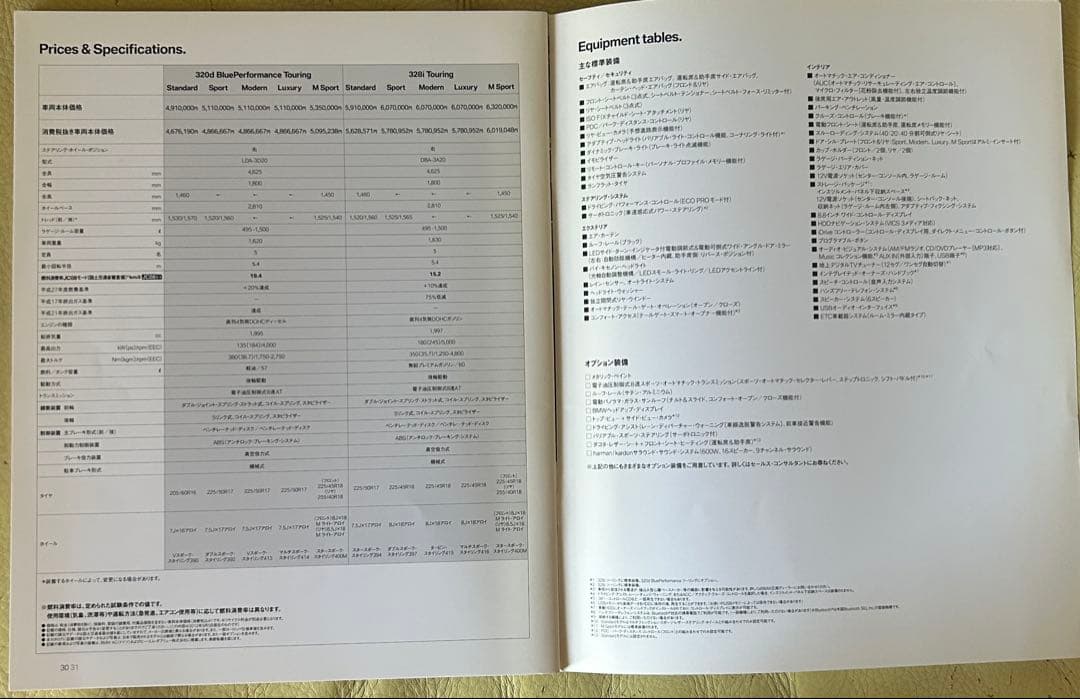 This catalog includes detailed specifications and equipment information for the BMW 3 Series Touring.