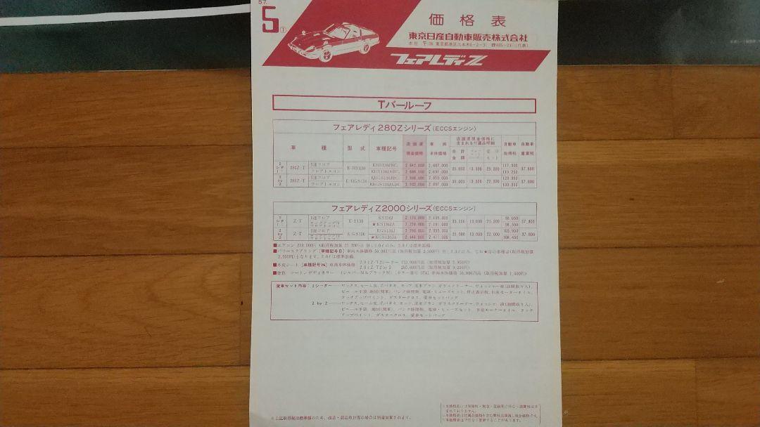 This is a set of two catalogs for the Fairlady Z (S130 model) with a price list, published in 1982 and 1980. They are old and may show signs of aging such as scratches or discoloration, but the condition is not severe. Please note and kindly accept.