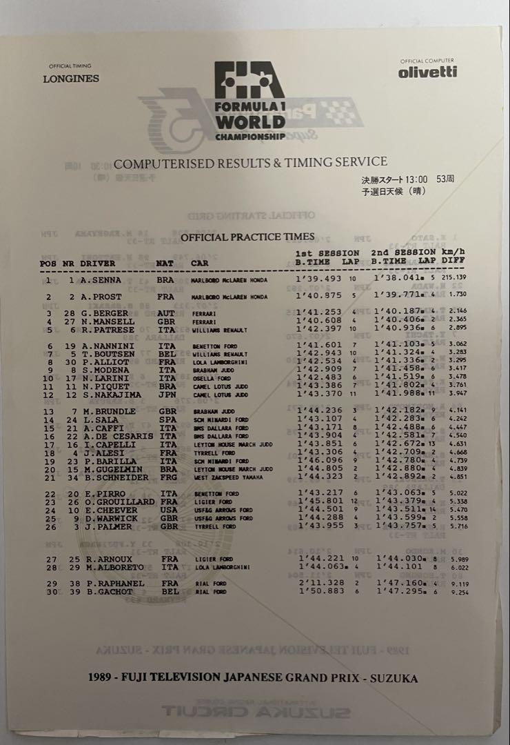1989 F1 program at Suzuka.
