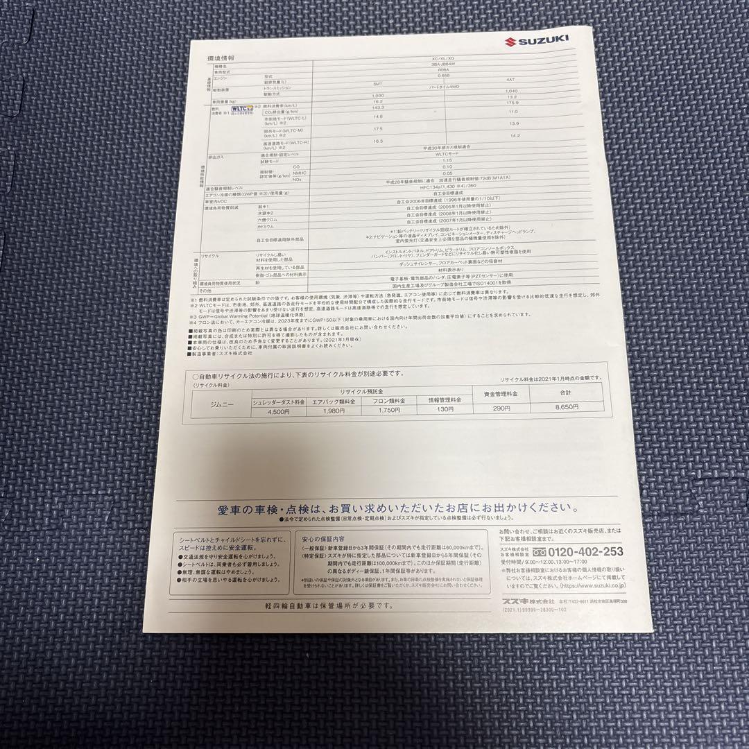 This catalog features the yellow model of Suzuki Jimny.