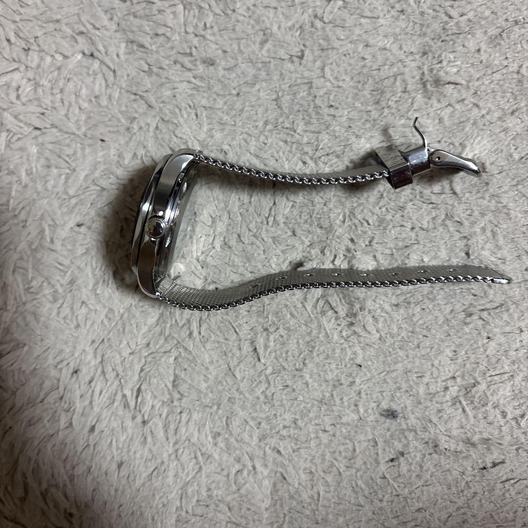 The strap is a Milanese mesh strap, providing a comfortable fit. The case and dial have a vintage feel, and the metal construction gives it a high-end feel.